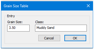 The classes of sediment which are displayed by the sediment analysis are based on values in the Grain Size table. This table can be customized while in Advanced mode.