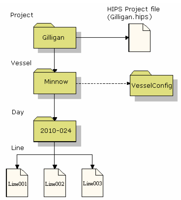 When a new project is created, this P/V/D/L directory structure is built and the HIPS file is generated. The vessel file must exist in the VesselConfig directory at the time the project is defined, however it can be modified at any time (providing the name is not changed).