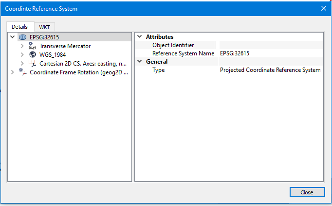 This tab displays the coordinate reference system as a WKT (Well Known Text) string.