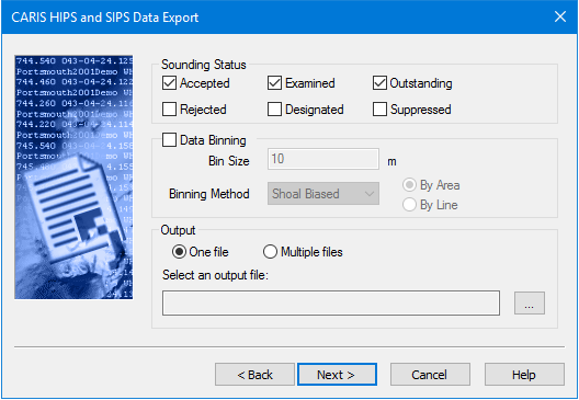 Each sounding in a cleaned HIPS dataset is stored with bits that determine the status of that sounding. You can choose to restrict the export process to soundings with specific status flags.