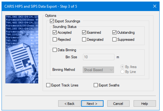 Defines which soundings are exported using the Sounding Status and Data Binning settings.