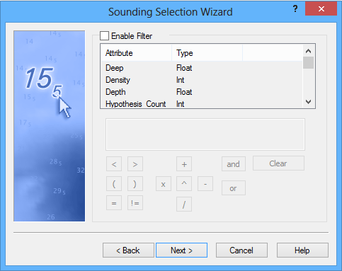 The Enable Filter option enables you to extract and display only the soundings that meet the conditions you set for the filter.