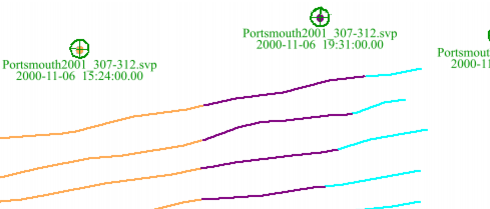 The track lines will display a colour for each cast, as below: