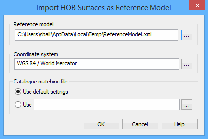 To map the HOB data to reference model features, a catalogue matching file must be specified. This file tells the application which feature object acronyms to look for and what they should be transformed into. You have the option of using a custom matching file, or using the default settings.