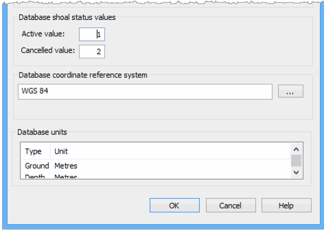 Using the Active value and Cancelled value fields, you can define the numbers that will be used to represent a shoal’s status when registered to the database. This status is reported in the Attributes window as the shlsta attribute.