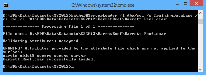 2. Type “BathyDBServerLoader” followed by the appropriate parameters.