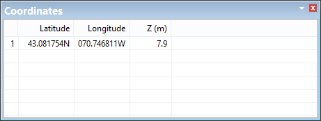 The Coordinates window displays coordinate information for points or line segments making up the geometry of a feature.