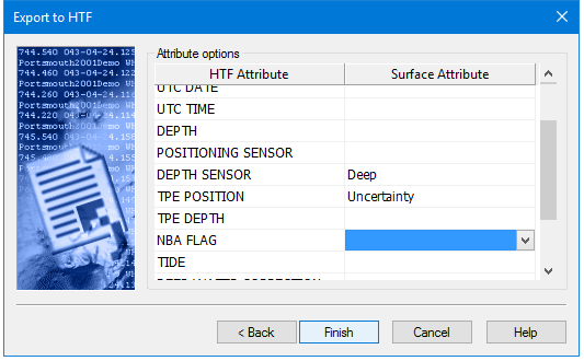 1. Expand the drop-down lists and select a surface attribute for each HTF attribute that should be mapped in the output file.