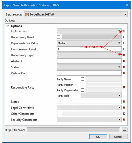 Output file name | The name and location of the exported BAG file. 1. Click the Browse button (...). 2. Navigate to the desired location and type a name for the output file. | |