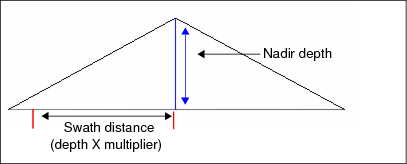 Use the Depth Multiplier option to filter out data outside of a swath distance determined by multiplying the nadir depth by a selected value. The distance this generates is in the same units as the depth. For example a depth of 20 metres multiplied by a set value of 4 will filter out any data beyond 80 metres of swath distance.