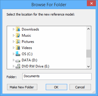 3. Click the Path Browse (...) button and select the a location for the new reference model.