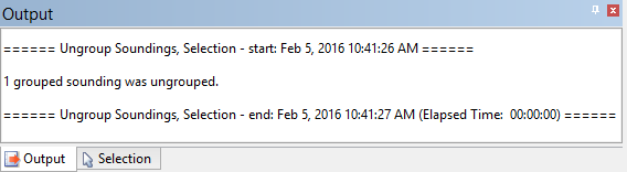 The soundings in all groups can now be selected and computed as individual features. A message is displayed in the Output window stating that all soundings were un-grouped.