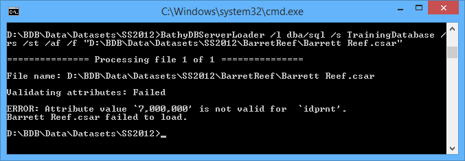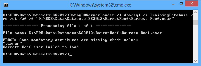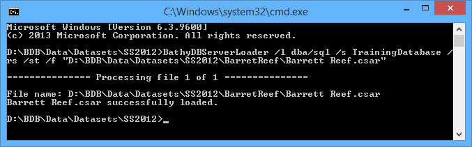 2. Type “BathyDBServerLoader” followed by the appropriate parameters.
