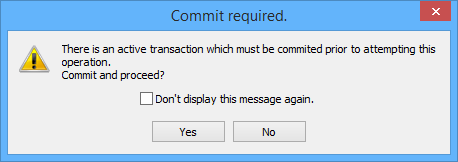 If you perform a database transaction and then attempt to perform second transaction without first saving the previous transaction, you are prompted to choose what to do with the first transaction before the second transaction can begin.