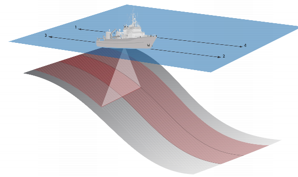 An optimum line pattern is illustrated below, up and down the slope with the edge of each swath aligning roughly with the boresight position of the first line set.