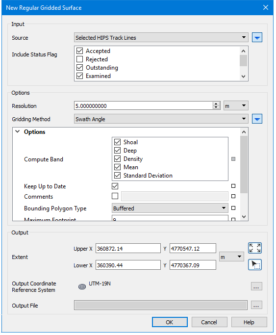 Source | If one or more track lines were selected before the surface creation process was started, the Selected Track Lines option is selected. Otherwise All Track Lines is set. |