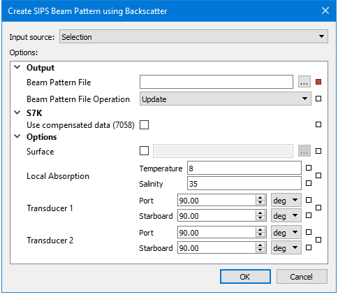 Input Source | • To create the beam pattern file from the selected line or lines, set the Source field to Selection. • To create the beam pattern file from all open lines, select the All Track Lines option. |