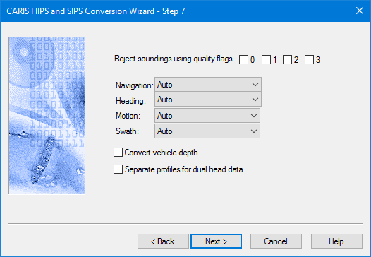 1. Select one or more of the quality flag check boxes to set which flagged soundings will be rejected during conversion.