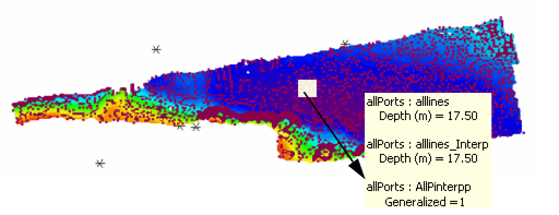 In the example above, the filter in the Properties for the Generalization layer has been set to show only the nodes which have been modified by the product surface. These are displayed as red dots in the example above.