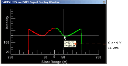 The Side Scan Signal Display window opens and displays a graph of the mean intensity values for the selected range.