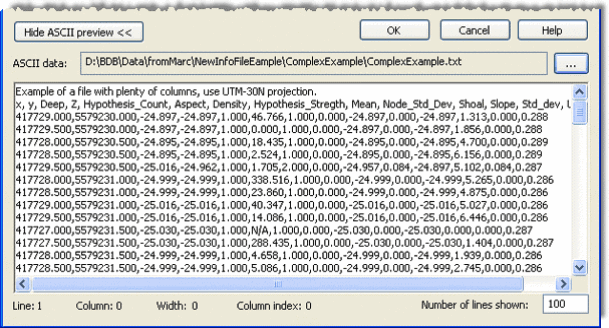 The first 100 lines of the file will be displayed by default. Use the scroll bar to see all the lines in the preview.