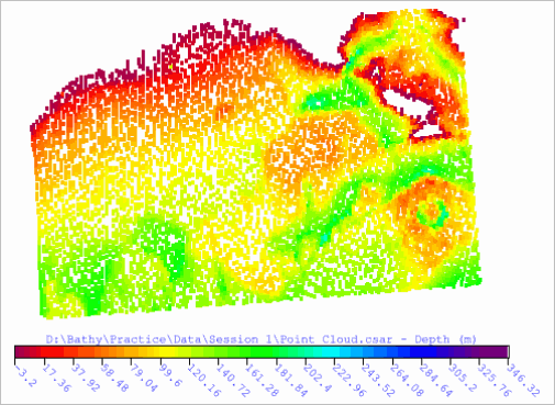 Each colour is also assigned a depth value based on its location in the map and the range of depths in the current dataset. Using the previous example, if green had a depth value of 50 and red had a depth value of 100, yellow would automatically be assigned a depth value of 75.
