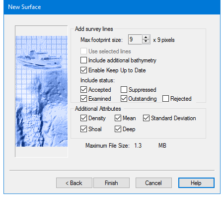 Include Additional Bathymetry | If water column bathymetry is present selecting this will add the data to the surface. |