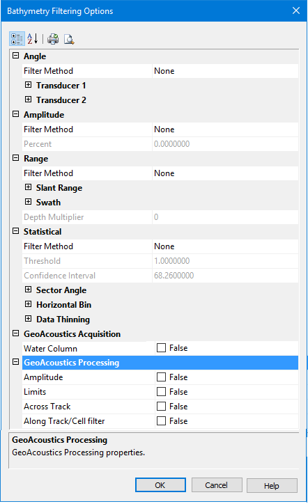Return to Bathymetry Filtering Options