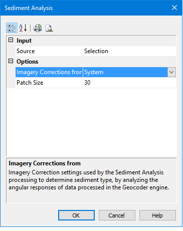 Imagery Corrections | The corrections that will be used when determining sediment type. Set by the system by default. |