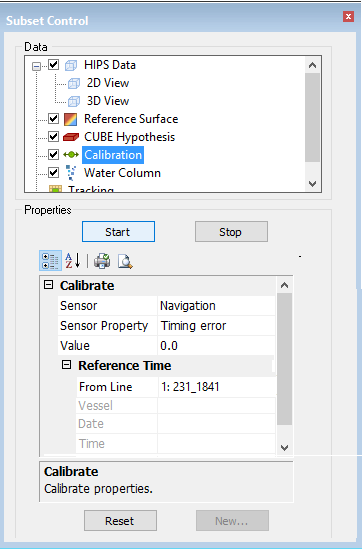During Calibration, data displayed in the Subset Editor views use the Merge functionality “on the fly” for display purposes only to visually show settings adjusted in the Calibration window. Any auxiliary sensor data already applied to the line, such as Refraction Coefficients or GPS Tide, will also be applied in the Calibration mode display. |