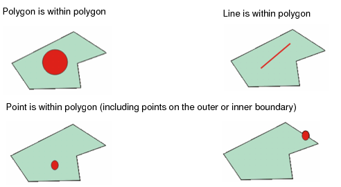 Find if a master feature is located within a certain distance or tolerance of other slave features. This operator requires additional filters and it only works for point features. Points that share geometry with the feature being tested will be skipped.