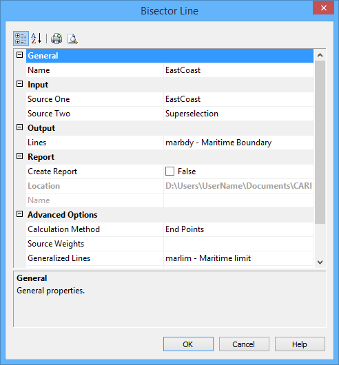 General | Name | The name of the layer on which the bisector line will be created. Select an option from the drop-down list. |