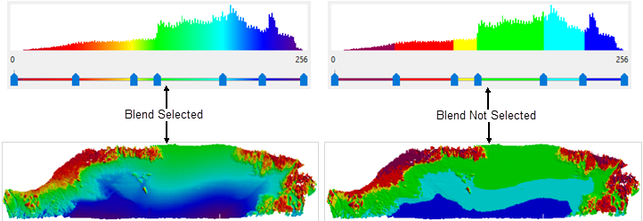 The following images show examples of depth range colours with and without the Blend option selected.
