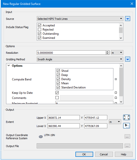 Regular gridded surfaces can be created from a specific track line or lines, from a defined area or from the full extents of the data.