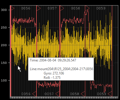 When multiple lines are displayed in Attitude Editor, tooltips in a graph will display time of data, line identification in PVDL format as well as the active sensors, as in the example below.
