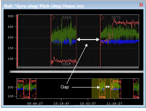 The line data is displayed in the graph, coloured using the settings for the sensors. The Overview graph shows a down-sampled graph of all of the lines as illustrated below.