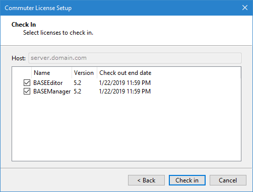 A commuter license can be checked back into the license server if it is no longer needed but the end date has not been reached. To check a license into the license server, you must be using a network commuter license for the server where you want to check in the commuter license.