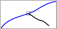 Intersecting splits the edge of both the existing feature and the new feature. In this example, the blue line is the existing line. It is split when the vertex of the black line is added.