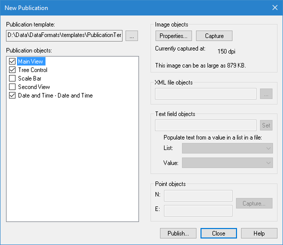 The Publication command uses the following dialog box.