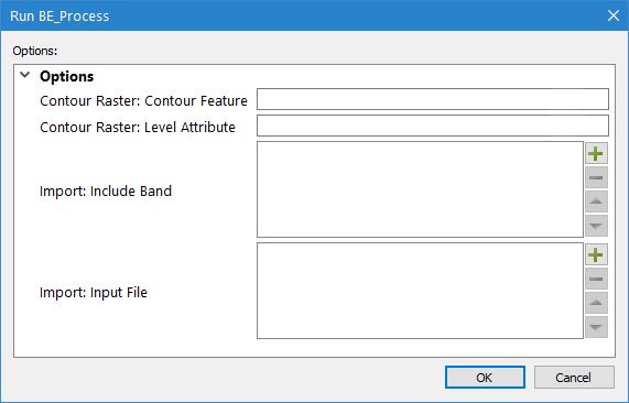 The dialog box will display fields that require specific data or settings in order to run the model file, for example, selecting raw data or a surface to be processed.