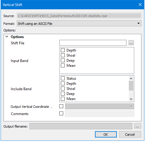 ASCII File shift: apply a file containing a grid of sounding datum heights, see ASCII File Shift