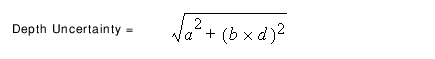 The area of influence is a radius that determines the number of nodes to which the sounding can be applied. This radius is determined by the depth uncertainty of the selected IHO S-44 survey order, using the formula below.