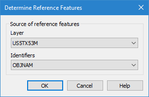 The attribute acronym of the reference features that will be used to identify which feature object a shoal box is using as a reference. The Point of reference (shlref) attribute of each shoal box will be populated with the attribute value for the selected attribute acronym from the feature to which the shoal was referenced. For example, with the options selected in the above dialog box, the shlref attribute for a shoal box would be populated with the Object Name (OBJNAM) of the feature object with which it is reference.