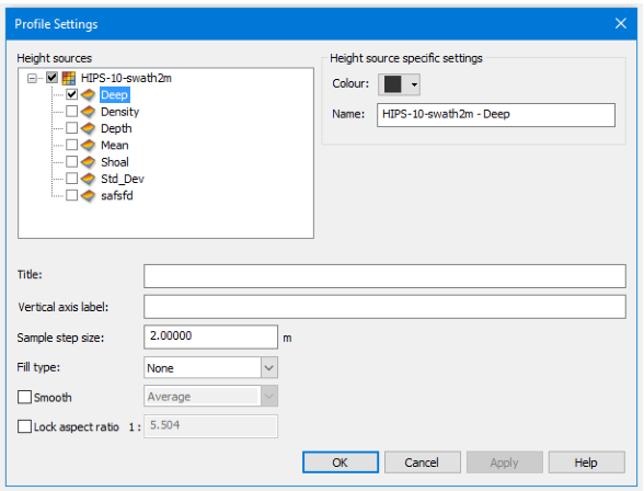3. In the Profile Settings dialog box, select one or more Height Sources for the profile line.