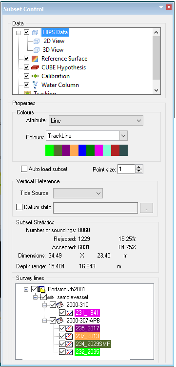 During Calibration, data displayed in the Subset Editor views use the Merge functionality “on the fly” for display purposes only to visually show settings adjusted in the Calibration window. Any auxiliary sensor data already applied to the line, such as Refraction Coefficients or GPS Tide, will also be applied in the Calibration mode display.