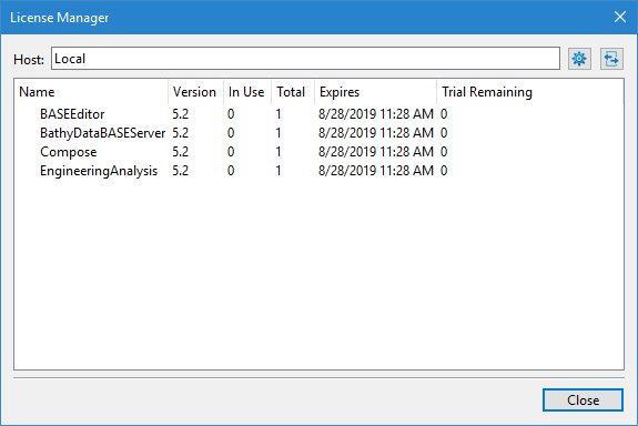 • Host: the name of the computer housing the license in use. For a local license, this will be populated as “Local”; for a network license, it will be populated with the license server in use.