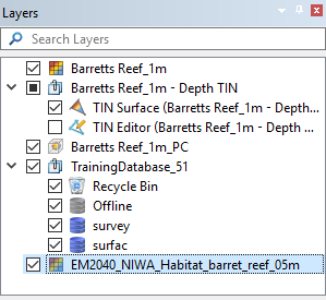If using the Selection command to open coverages from multiple database objects at the same time, those coverages will be opened under a group in the Layers window. This group will be named according to the time and date that the group was created.