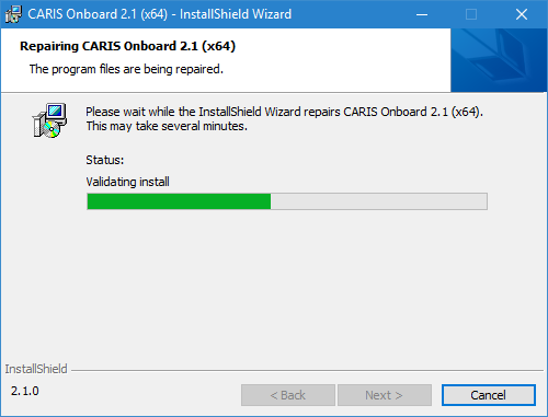 This step is performed without any user interaction, and will close when finished, at which time the Program Maintenance dialog box is displayed.