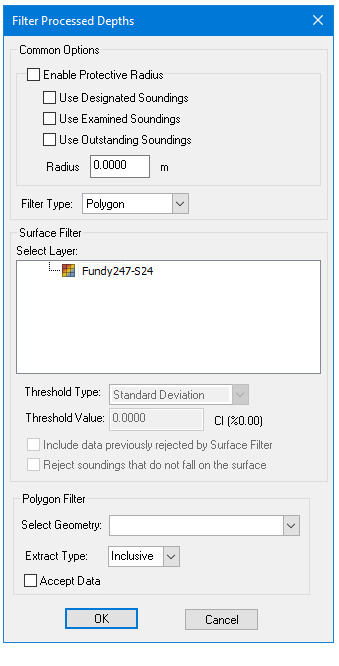 Options for surface filtering are set in the Filter Processed Depths dialog box.