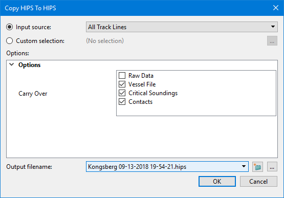 HIPS files and individual track lines can be copied using the Copy HIPS to HIPS dialog box.